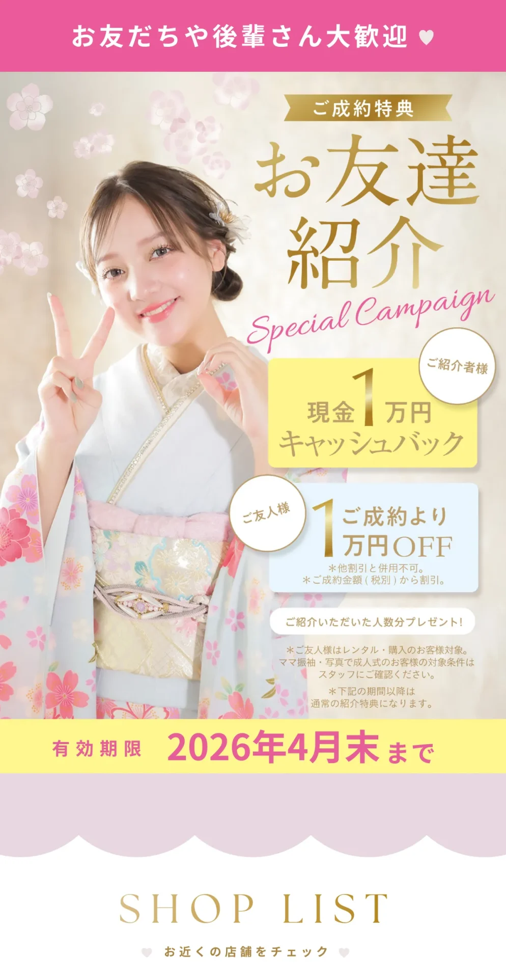 【4月末まで】お友だち紹介 グレードアップ中|とみひろふりそで |成人式振袖レンタル とみひろふりそで