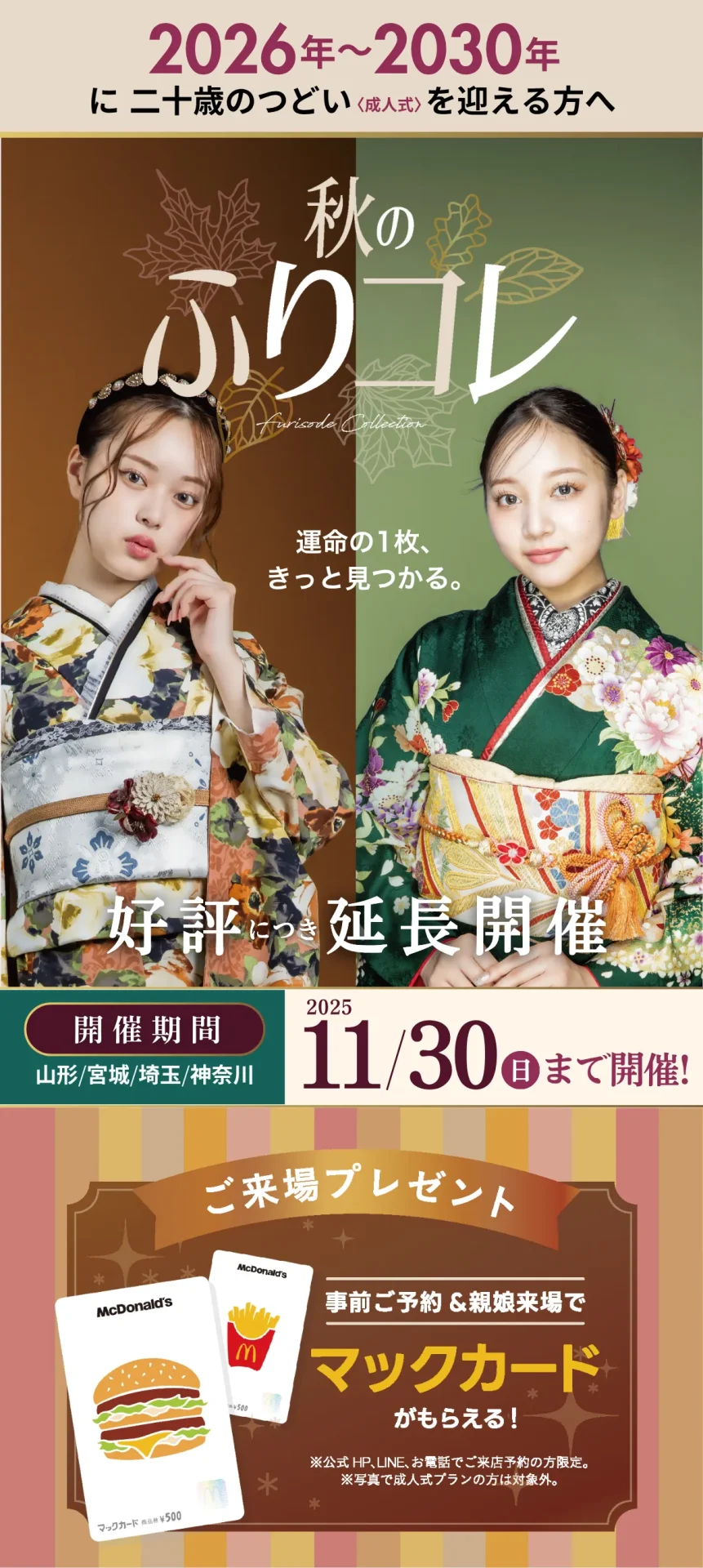 【11/30まで】運命の一枚、きっと見つかる。「秋のふりコレ」|とみひろふりそで |成人式振袖レンタル とみひろふりそで