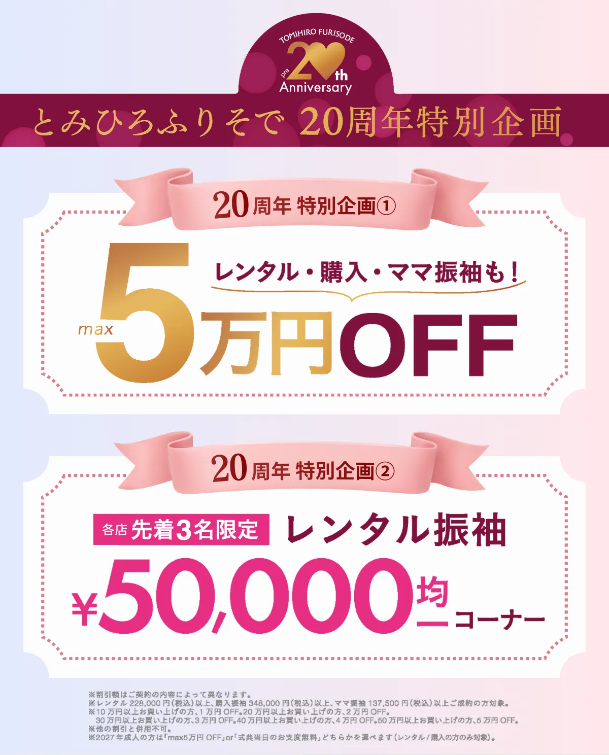 【20周年特別企画】「振袖フェア 2026」|とみひろふりそで |成人式振袖レンタル とみひろふりそで